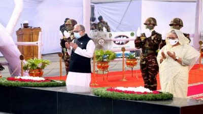 আকাশবার্তা ডেস্ক : জাতির পিতা বঙ্গবন্ধু শেখ মুজিবুর রহমানের জন্মশতবার্ষিকী ও জাতীয় শিশু দিবস উপলক্ষে বঙ্গবন্ধুর প্রতিকৃতিতে শ্রদ্ধা নিবেদন করেছেন রাষ্ট্রপতি মো. আবদুল হামিদ ও প্রধানমন্ত্রী শেখ হাসিনা। বুধবার (১৭ বিস্তারিত...