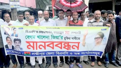 আকাশবার্তা ডেস্ক : দুর্নীতি মামলায় কারাগারে বন্দি খালেদা জিয়ার দ্রুত মুক্তির দাবিতে লক্ষ্মীপুরে মানববন্ধন করেছে বিএনপির নেতা-কর্মীরা। ১২ সেপ্টেম্বর বৃহস্পতিবার সকালে লক্ষ্মীপুর আইনজীবি সমিতি প্রাঙ্গণে এ মানববন্ধন কর্মসূচি পালিত হয়। বিস্তারিত...