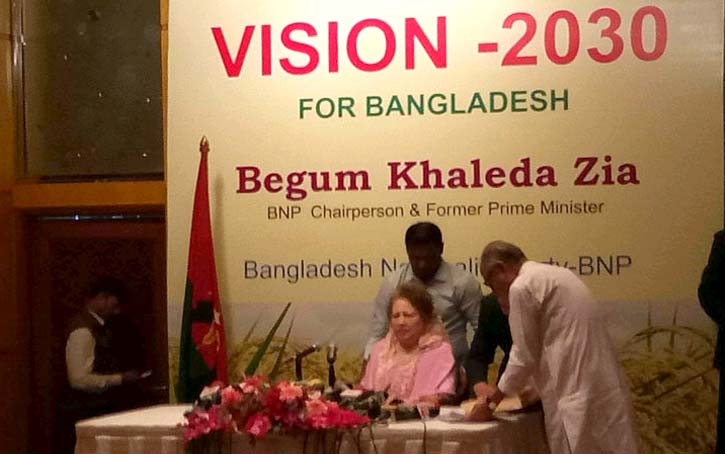 আকাশবার্তা ডেস্ক : বিএনপি চেয়ারপারসন বেগম খালেদা জিয়া বলেছেন, ভিশন ২০৩০ বাস্তবায়ন হলে বাংলাদেশ হবে আত্মমর্যাদাশীল রাষ্ট্র। বিএনপি বাংলাদেশকে একটি সুখী সমৃদ্ধ দেশ গড়ার লক্ষ্যে ভিশন ২০৩০ বাস্তবায়ন করতে চায়”। বিস্তারিত...