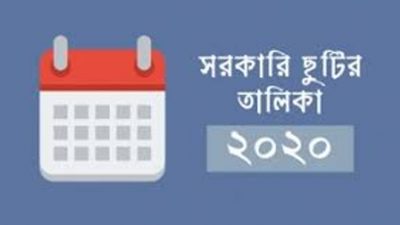 আকাশবার্তা ডেস্ক : নতুন বছরের ক্যালেন্ডার অনুযায়ী, ২০২০ সালে মোট সরকারি ছুটি ২২ দিন। এর মধ্যে সাধারণ ছুটি ১৪ দিন। এছাড়া নির্বাহী আদেশে ছুটি ৮দিন।মুসলিমদের জন্য ঐচ্ছিক ছুটি রয়েছে ৫ বিস্তারিত...