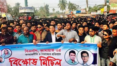 নিজস্ব প্রতিবেদক : বিএনপি জামায়াতের অপরাজনীতি ও নৈরাজ্যের প্রতিবাদে বিক্ষোভ মিছিল করেছে লক্ষ্মীপুর জেলা ছাত্রলীগ। বুধবার (২৭ ডিসেম্বর) বিকালে পৌর শহরের উত্তর তেমুহনী এলাকা থেকে বিক্ষোভ মিছিল বের করা হয়। বিস্তারিত...