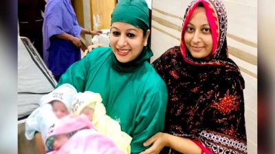 এক্সক্লুসিভ ডেস্ক : নারায়ণগঞ্জে অ্যানি বেগম (২৪) নামের এক নারী একসঙ্গে তিন সন্তানের জন্ম দিয়েছেন। তিন সন্তানের নাম রাখা হয়েছে স্বপ্ন, পদ্মা ও সেতু। অ্যানি বেগম নারায়ণগঞ্জ বন্দরের নবীগঞ্জ এলাকার বিস্তারিত...
