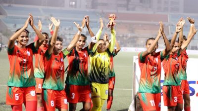 আকাশবার্তা ডেস্ক : আন্তর্জাতিক প্রীতি ম্যাচে সিঙ্গাপুরের বিপক্ষে ৮-০ গোলের বিশাল ব্যবধানে জয়ী পেয়েছে বাংলাদেশ নারী ফুটবল দল। এ নিয়ে টানা দুই ম্যাচে জয় পেল বাংলাদেশের মেয়েরা। সোমবার (৪ ডিসেম্বর) বিস্তারিত...