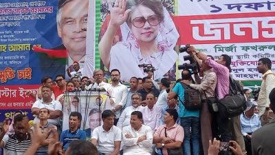 আকাশবার্তা ডেস্ক : সরকার পতনের একদফা দাবিতে আগামী ২৮ অক্টোবর রাজধানী ঢাকায় মহাসমাবেশ করার ঘোষণা দিয়েছে বাংলাদেশ জাতীয়তাবাদী দল- বিএনপি। বুধবার (১৮ অক্টোবর) নয়াপল্টনে দলের কেন্দ্রীয় কার্যালয়ের সামনে এক সমাবেশ বিস্তারিত...