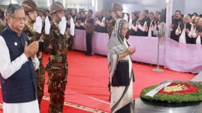 আকাশবার্তা ডেস্ক : জাতির জনক বঙ্গবন্ধু শেখ মুজিবুর রহমানের ৪৮তম শাহাদাতবার্ষিকী ও জাতীয় শোক দিবস উপলক্ষ্যে তাঁর প্রতিকৃতিতে ফুল দিয়ে শ্রদ্ধা জানিয়েছেন রাষ্ট্রপতি মো. সাহাবুদ্দিন এবং প্রধানমন্ত্রী শেখ হাসিনা। আজ বিস্তারিত...