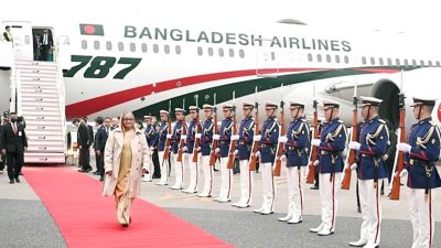 আকাশবার্তা ডেস্ক : জাপানের প্রধানমন্ত্রী ফুমিও কিশিদার আমন্ত্রণে চারদিনের সফরে মঙ্গলবার (২৫ এপ্রিল) বিকেলে টোকিও পৌঁছলে প্রধানমন্ত্রী শেখ হাসিনাকে লাল গালিচা সংবর্ধনা দেয়া হয়। প্রধানমন্ত্রী ও তাঁর সফরসঙ্গীদের বহনকারী বিমান বিস্তারিত...