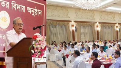 আকাশবার্তা ডেস্ক : রাষ্ট্রপতির প্রেস সচিব জয়নাল আবেদীন জানিয়েছেন, দেশের একুশতম রাষ্ট্রপতি মো. আবদুল হামিদকে রাজকীয় বিদায়ের জন্য প্রস্তুত রয়েছে বঙ্গভবন। তিনিই বাংলাদেশের একমাত্র রাষ্ট্রপতি, যিনি দুইমেয়াদ ১০ বছর রাষ্ট্রপ্রধান বিস্তারিত...