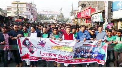 আকাশবার্তা ডেস্ক : অনূর্ধ্ব ১৯ বিশ্বকাপ ক্রিকেটে বাংলাদেশ দল চ্যাম্পিয়ন হওয়ায় লক্ষ্মীপুরে আনন্দ মিছিল করেছে জেলা ছাত্রলীগ। বুধবার বিকালে শহরের উত্তর তেমুহনী থেকে আনন্দ মিছিলটি বের হয়ে শহর প্রদক্ষিণ করে। বিস্তারিত...