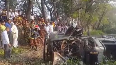 আকাশবার্তা ডেস্ক : নোয়াখালীর সুবর্ণচর উপজেলার সোনাপুর-হাতিয়া স্টিমার ঘাট সড়কে সেনাবাহিনীর একটি জিপ নিয়ন্ত্রণ হারিয়ে খালে পড়ে যায়। এতে ঘটনাস্থলে ফয়েজ ও মাসুম এবং হাসপাতালে চিকিৎসাধীন অবস্থায় ফিরোজসহ তিন সেনা বিস্তারিত...