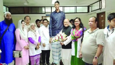 আকাশবার্তা ডেস্ক : বয়সানুপাতে যে পরিমাণ লম্বা হওয়ার কথা তার চেয়ে অতিকায় দীর্ঘ কক্সবাজারের রামুর গর্জনিয়ার জিন্নাত আলী (২০)। ধারণা করা হচ্ছে তিনিই বর্তমান সময়ের বিশ্বের সবচেয়ে লম্বা মানুষ (৮ বিস্তারিত...