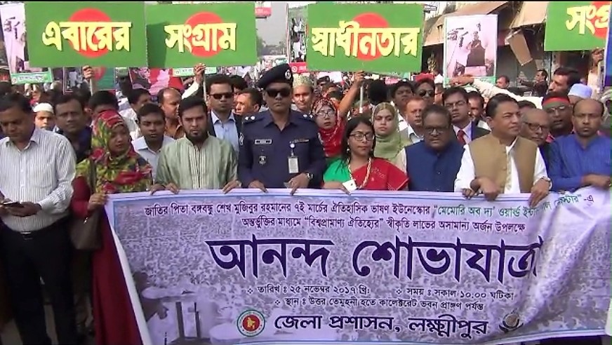 আকাশবার্তা ডেস্ক : জাতির জনক বঙ্গবন্ধু শেখ মুজিবুর রহমানের ঐতিহাসিক ৭ই মার্চের ভাষণ ইউনেস্কোর স্বীকৃতি উপলক্ষ্যে লক্ষ্মীপুরের চন্দ্রগঞ্জে আনন্দ শোভাযাত্রা অনুষ্ঠিত হয়েছে। শনিবার বেলা ১১টায় চন্দ্রগঞ্জ থানা প্রাঙ্গণ থেকে শোভাযাত্রাটি বিস্তারিত...