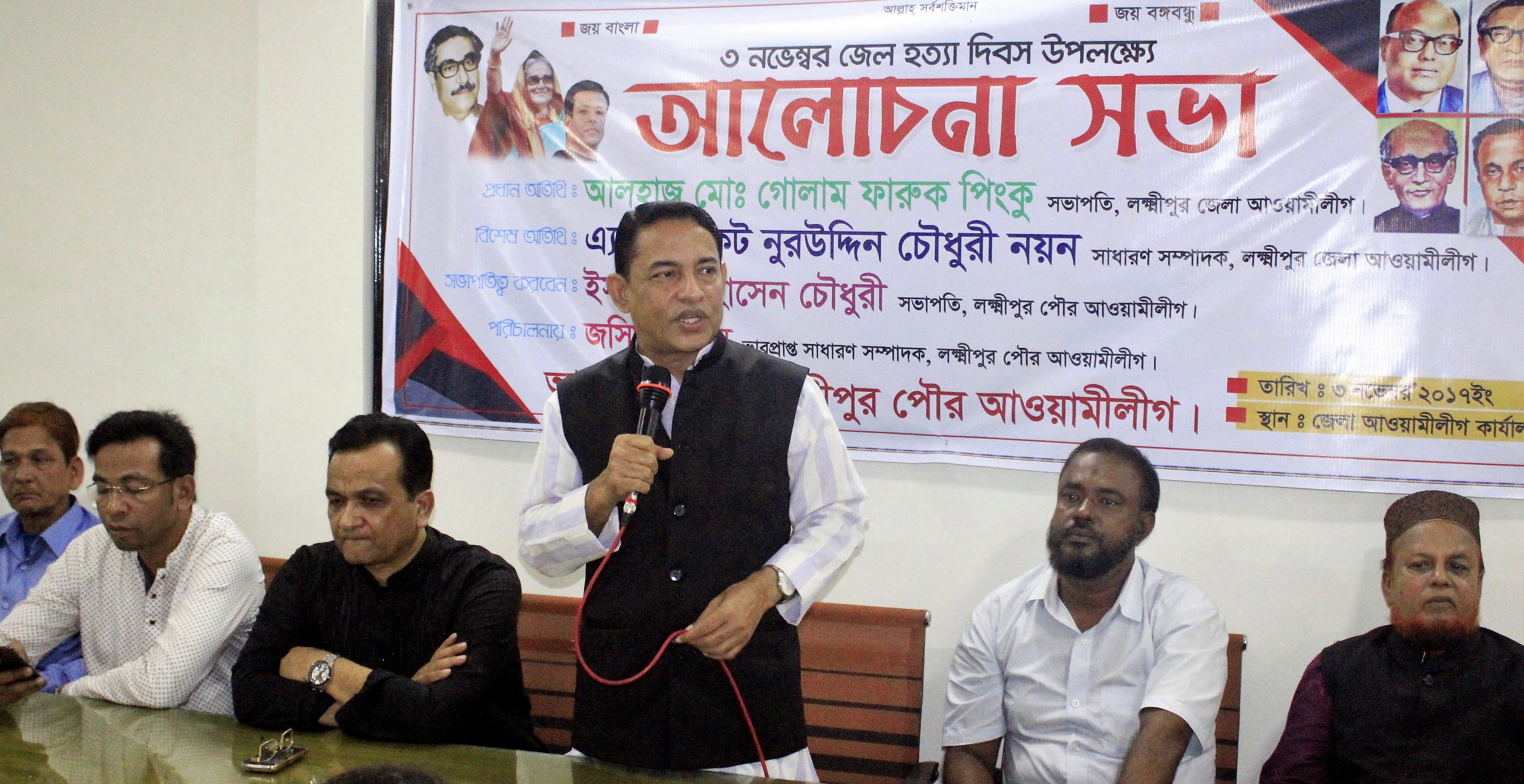 আকাশবার্তা ডেস্ক : লক্ষ্মীপুরে জেলহত্যা দিবস উপলক্ষে পৌর আ.লীগের উদ্যোগে আলোচনা সভা অনুষ্ঠিত হয়েছে। শুক্রবার (৩ নভেম্বর) বিকেল ৫টায় জেলা আ.লীগ কার্যালয়ে অনুষ্ঠিত সভায় প্রধান অতিথি ছিলেন, জেলা আ.লীগের সাধারণ বিস্তারিত...