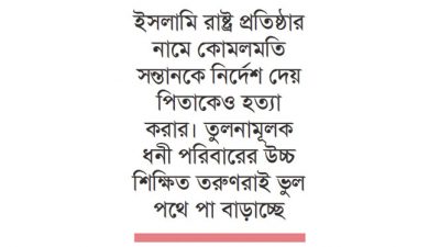 বিশেষ প্রতিবেদন : ধর্মকে ব্যবহার করে শিক্ষিত তরুণদের জঙ্গি কার্যক্রমে এমনভাবে ব্রেইনওয়াশ করা হয় সেখান থেকে আর সরে আসা সম্ভব হয় না। যে কারণে মেধাবী তরুণ উগ্র মতবাদে আকৃষ্ট হয়। বিস্তারিত...