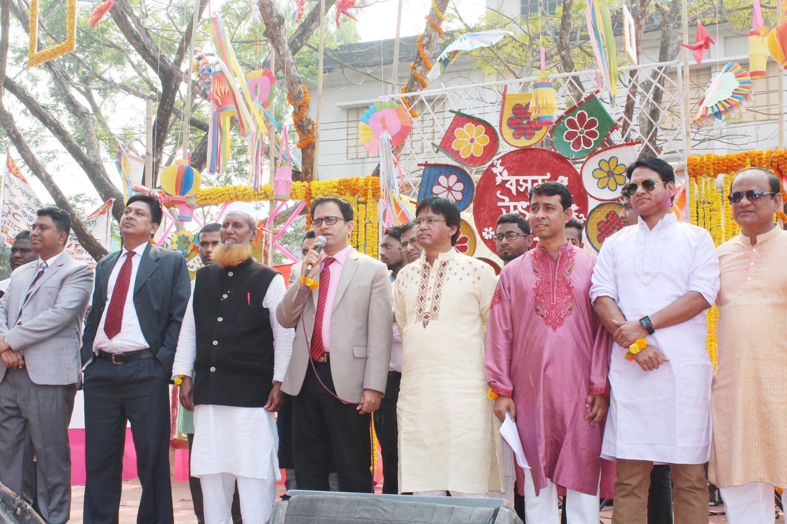 ঋতুরাজ বসন্ত বরণ উপলক্ষে লক্ষ্মীপুর সরকারি কলেজ ক্যাম্পাসে আয়োজিত অনুষ্ঠানে জেলা প্রশাসক মো. জিল্লুর রহমান চৌধুরীসহ অন্যান্য অতিথিবৃন্দ।