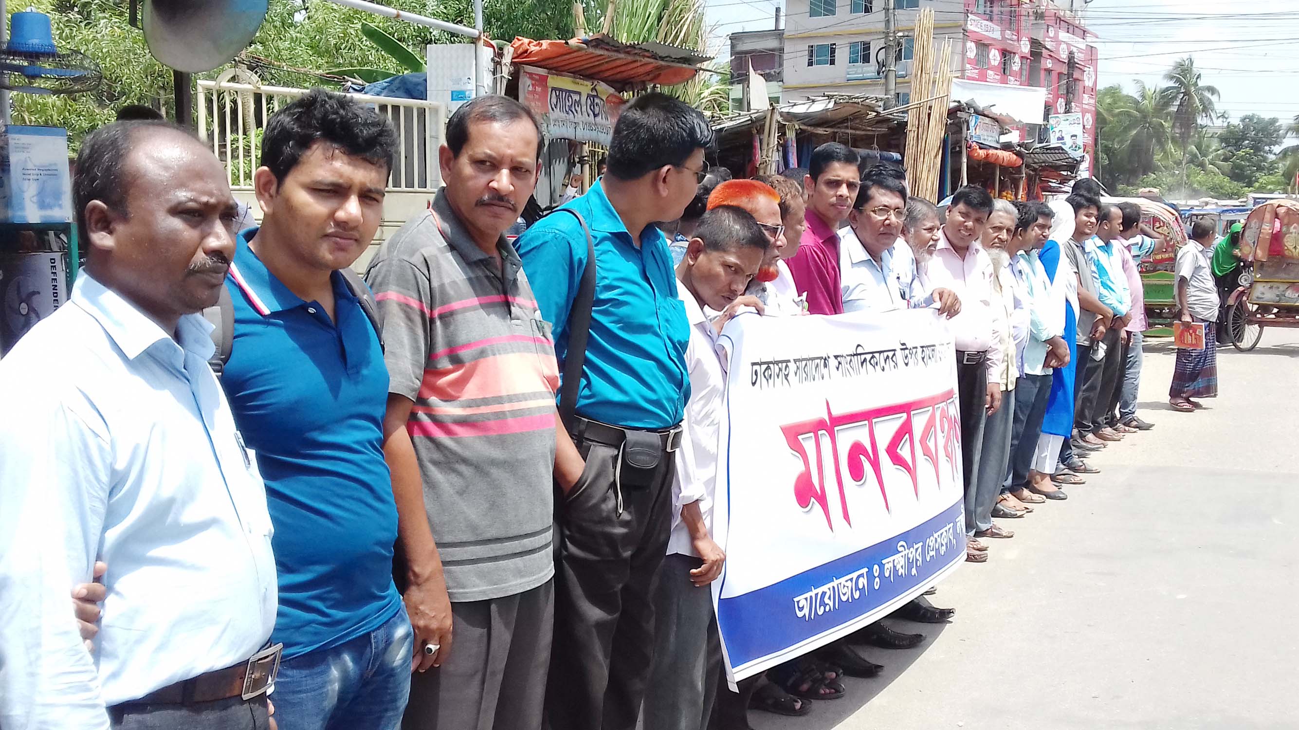 সাংবাদিক নির্যাতনের প্রতিবাদে লক্ষ্মীপুরে মানববন্ধন