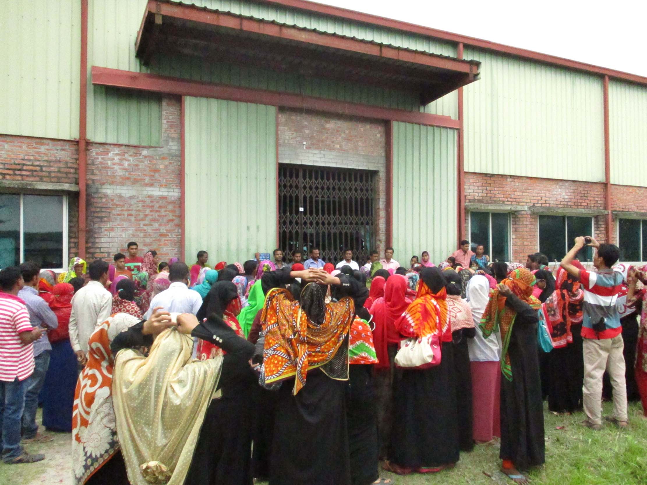 সুয়েটার ওই কারখানায় কর্মরত বিক্ষুব্দ শ্রমিক সুপারভাইজার সানাউল্যাহ, লিংকিন সেকশনের শিরিন, জান্নাত, ওভার লক সেকশনের আকলিমা, পাকিং সেকশনের ইসমাইল, নিটিং সেকশনের সুরমাসহ অনেকেই জানান, আমরা গত বৃহস্পতিবার কাজ করে যাওয়ার পর শনিবার কাজ করতে এসে দেখি গেইটে তালা ঝুলানো হয়েছে এবং গণহারে শ্রমিক ছাঁটাই করার নোটিশ টাঙানো রয়েছে। তারা জানায়, কর্তৃপক্ষ আমাদের ৫ মাসের বকেয়া বেতন না দিয়ে এবং বিকল্প কর্মসংস্থানের সময় না দিয়ে কিভাবে শ্রমিক ছাঁটাই করে।