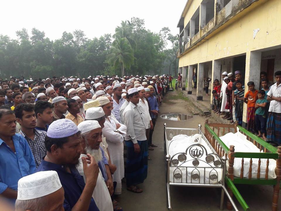 জানাজা ঈমামতি করেন, তোরাবগঞ্জ বাজার জামে মসজিদের খতিব মাওলানা মহসিন। এরআগে বক্তব্য রাখেন, কমলনগর উপজেলা পরিষদের চেয়ারম্যান সৈয়দ শামছুল আলম, তোরাবগঞ্জ ইউনিয়ন পরিষদের চেয়ারম্যান ফয়সাল আহমেদ রতন প্রমুখ। জানাজা শেষে তাদের পারিবারিক কবরস্থানে দুই ভাইয়ের মরদেহ পাশাপাশি দাফন করা হয়।
