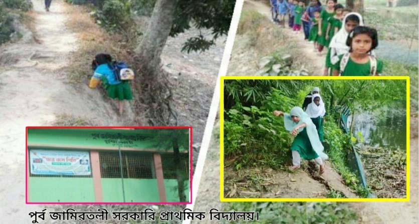 পূর্বজামিরতলী সঃ প্রাঃ বিদ্যালয়ের রাস্তা ভেঙে খালে, দুর্ভোগে শিক্ষক-শিক্ষার্থীরা
