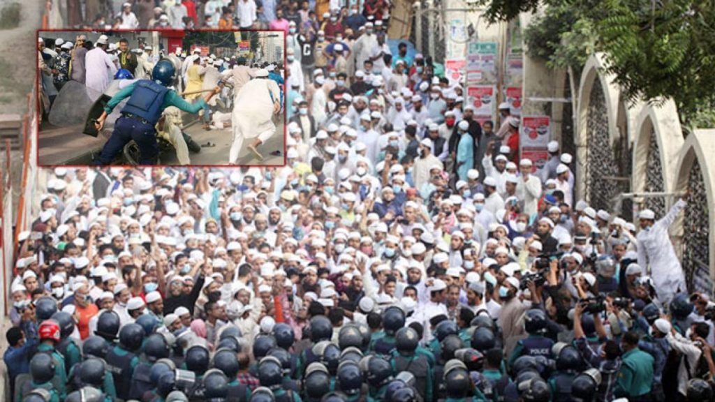 এদিকে শুক্রবার জুমার পর ইসলামী আন্দোলন বাংলাদেশের নায়েবে আমীর চরমোনাই পীর সৈয়দ ফয়জুল করীম এবং বাংলাদেশ খেলাফত মজলিসের ভারপ্রাপ্ত মহাসচিব ও হেফাজতে ইসলামের যুগ্ম মহাসচিব মামুনুল হকের অনুসারী মাদ্রাসা শিক্ষার্থীরা জাতীয় বায়তুল মোকাররম মসজিদের উত্তর গেট থেকে বিক্ষোভ মিছিল বের করে। এ সময় শিক্ষার্থীদের ছত্রভঙ্গ করতে লাঠিপেটা করে পুলিশ। মিছিল থেকে সাত-আটজনকে আটক করে রমনা থানায় নিয়ে যাওয়া হয়।