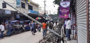 অপরদিকে সড়ক বিভাগের অনুমতি না নিয়ে রাস্তা কেটে ড্রেন নির্মাণ করায় সড়কের পাশে অবস্থিত পল্লী বিদ্যুতের একটি খুঁটি ভেঙ্গে পড়ে। এতে ওই খুঁটি থেকে সংযোগকৃত তিনটি মিটার ভেঙ্গে যায়।