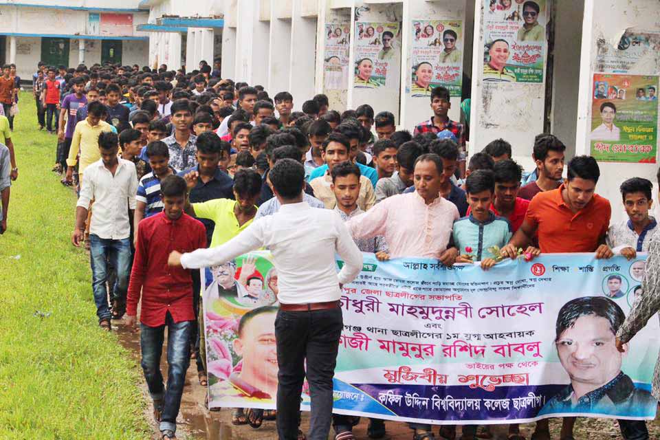 পরে ছাত্রলীগের উদ্যোগে নবীন ছাত্র-ছাত্রীদের বরণ উপলক্ষে একটি বিশাল আনন্দ মিছিল কলেজ ক্যাম্পাস পদক্ষিণ করে চন্দ্রগঞ্জ পশ্চিম বাজার বাসস্ট্যান্ডে এসে শেষ হয়।