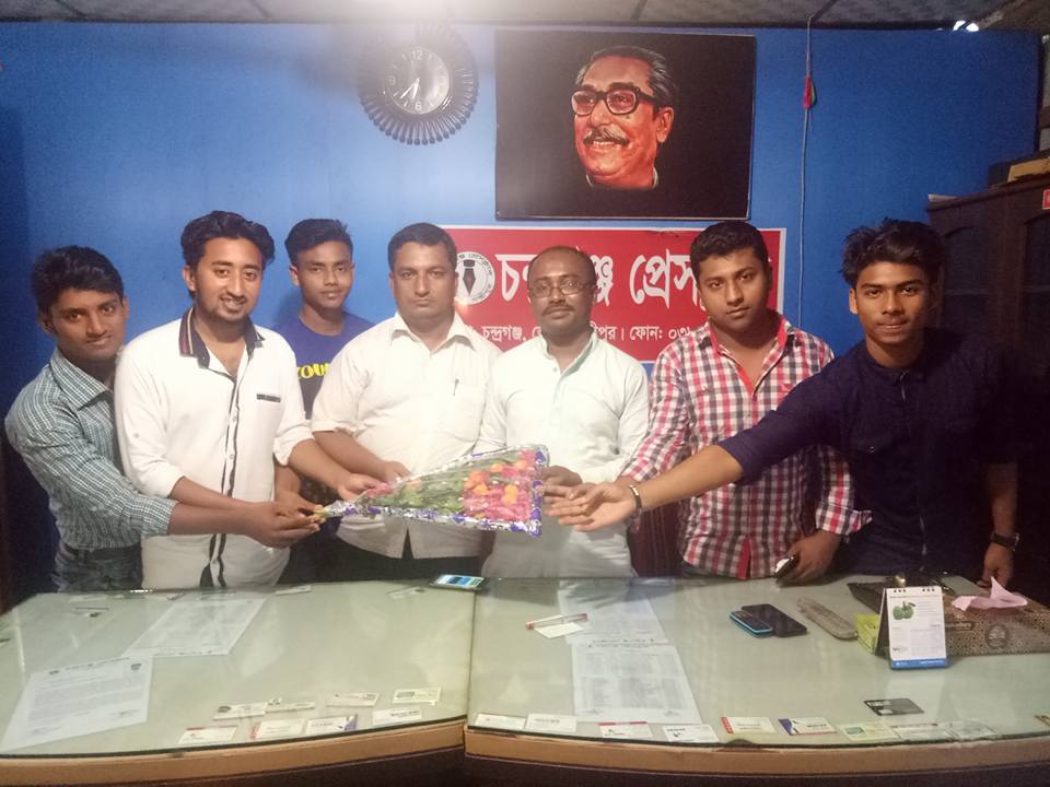 চন্দ্রগঞ্জ প্রেসক্লাবের নবনির্বাচিত সভাপতি মো. আলী হোসেনকে ফুল দিয়ে শুভেচ্ছা জানিয়েছেন, স্বেচ্ছাসেবী সংগঠন ‘মান্দারী বিকেবি ক্লাবের’ নেতৃবৃন্দ। শনিবার সন্ধ্যায় প্রেসক্লাব কার্যালয়ে এ শুভেচ্ছা বিনিময় অনুষ্ঠিত হয়। এ সময় প্রেসক্লাবের সাংগঠনিক সম্পাদক মো. আলাউদ্দিন উপস্থিত ছিলেন।