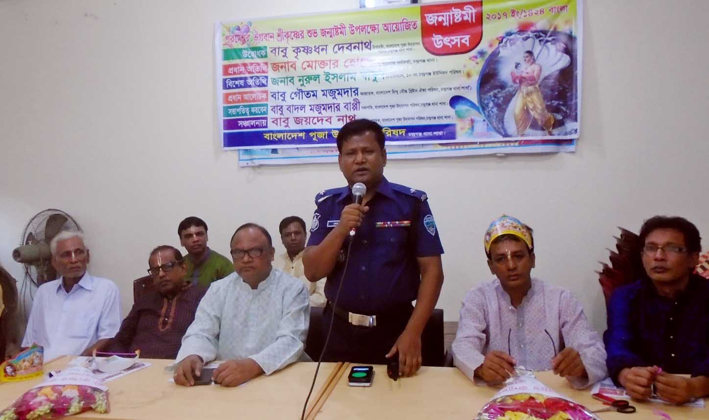 চন্দ্রগঞ্জ থানা পূজা উদযাপন পরিষদের সভাপতি বাদল মজুমদার বাপ্পীর সভাপতিত্বে এতে প্রধান অতিথি ছিলেন, চন্দ্রগঞ্জ থানার ভারপ্রাপ্ত কর্মকর্তা (ওসি) মো. মোক্তার হোসেন।