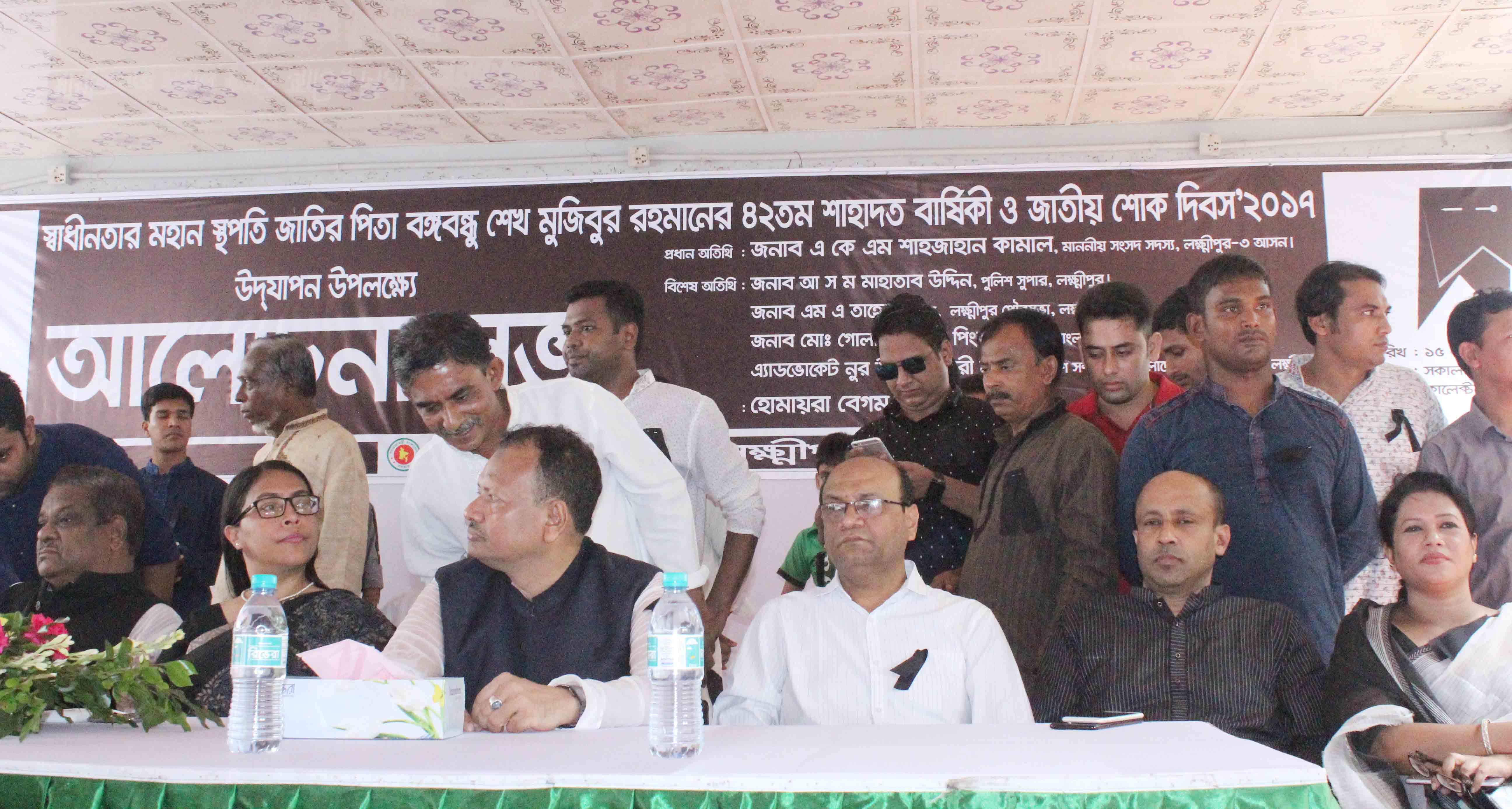 জেলা প্রশাসনের আয়োজনে সভায় উপস্থিত ছিলেন, লক্ষ্মীপুর সদর-৩ আসনের সংসদ সদস্য এ কে এম শাহজাহান কামাল, জেলা প্রশাসক হোমায়রা বেগম, জেলা পুলিশ সুপার আ স ম মাহাতাব উদ্দিন, জেলা আওয়ামীলীগ সভাপতি গোলাম ফারুক পিংকু, সাধারণ সম্পাদক অ্যাডভোকেট নুরউদ্দিন চৌধুরী নয়ন, সদর উপজেলা চেয়ারম্যান এ কে এম সালাহ্ উদ্দিন টিপু, জেলা ছাত্রলীগের সভাপতি চৌধুরী মাহমুদুন্নবী সোহেল, সাধারণ সম্পাদক রাকিব হোসেন লোটাস প্রমুখ।