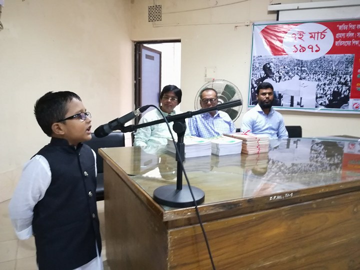 অনুষ্ঠানে কাকলি শিশু অঙ্গনের প্লে শ্রেণির ছাত্র ও শিশু একাডেমী চিত্রাংকন বিভাগের প্রথমবর্ষের শিক্ষার্থী আহমেদ শেহজাদ যিয়ান বঙ্গবন্ধুর ঐতিহাসিক সেই ৭ই মার্চের ভাষণ দেয়। এ সময় উপস্থিত ছিলেন, চিত্রাংনের শিক্ষিকা সুলতানা মাছুমা রিতুসহ অভিভাবক ও শিক্ষার্থীরা।
