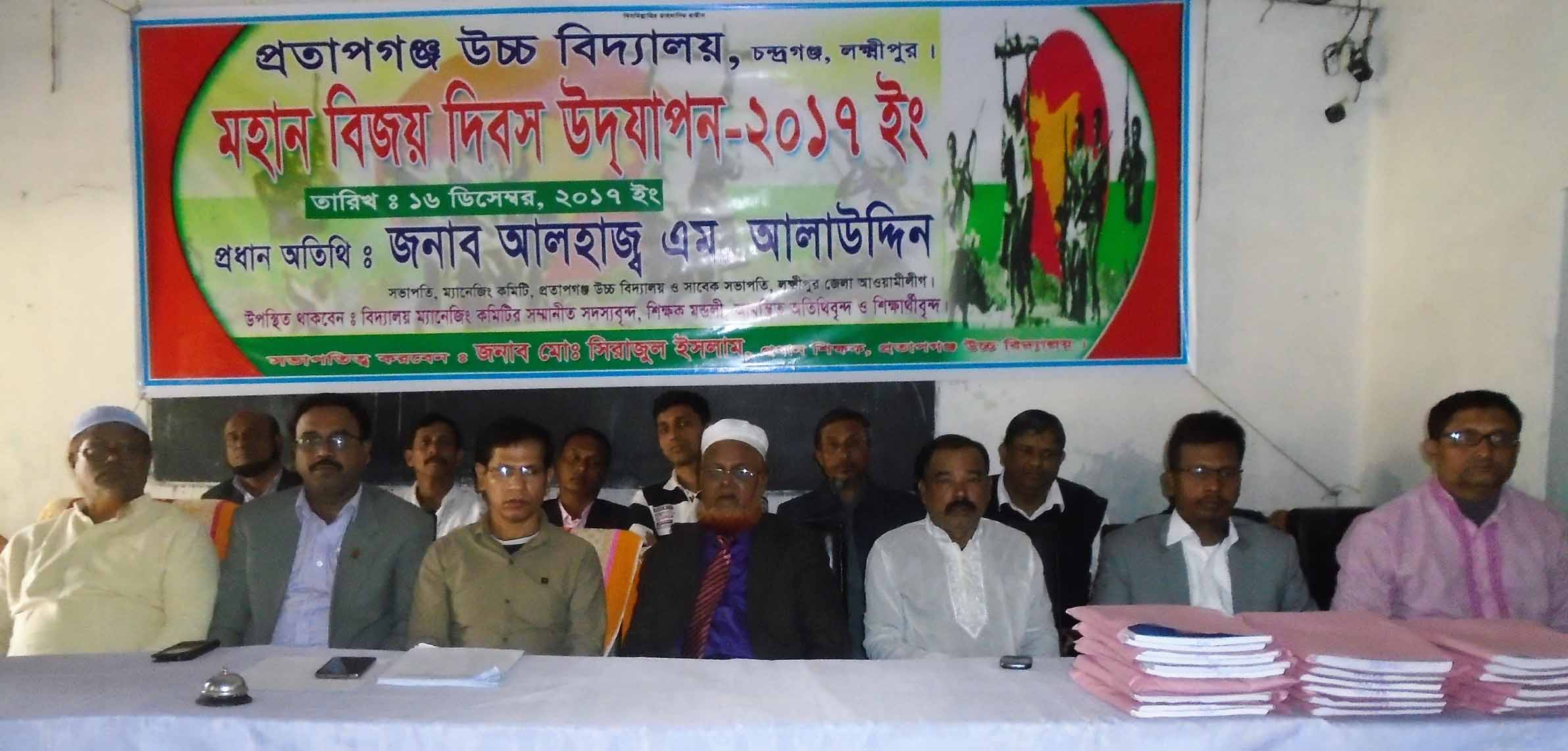 একই সময় প্রতাপগঞ্জ উচ্চ বিদ্যালয়ে আলোচনা সভায় সভাপতিত্ব করেন, বিদ্যালয়ের প্রধান শিক্ষক সিরাজুল ইসলাম। প্রধান অতিথির বক্তব্য রাখেন, ম্যানেজিং কমিটির সভাপতি আলহাজ্ব এম আলাউদ্দিন, চন্দ্রগঞ্জ থানার ওসি মো. মোক্তার হোসেন, ম্যানেজিং কমিটির সদস্য মাওঃ আব্দুল কুদ্দুছ, মহিন উদ্দিন বুলু, দেলোয়ার হোসেন প্রমুখ।