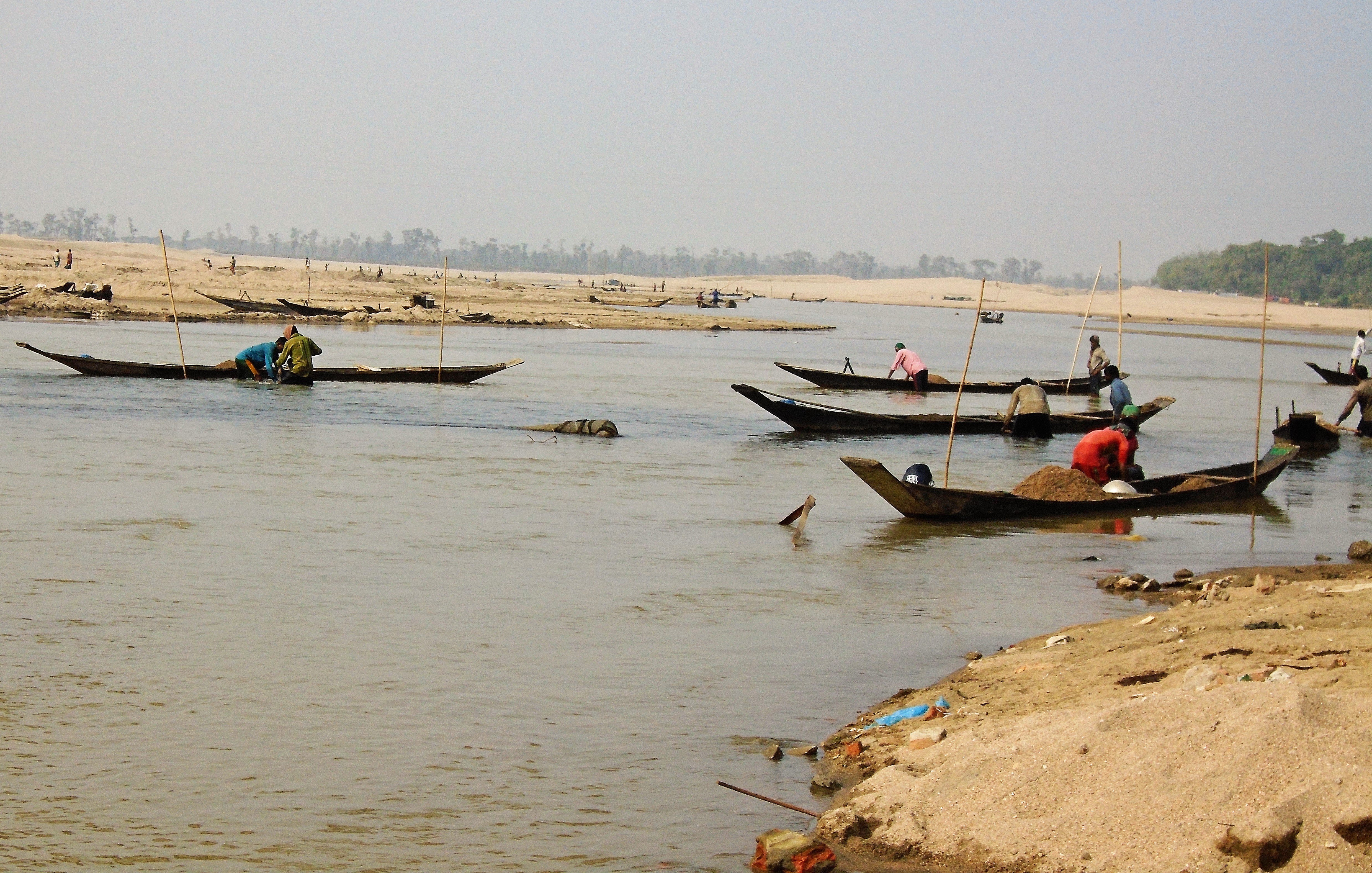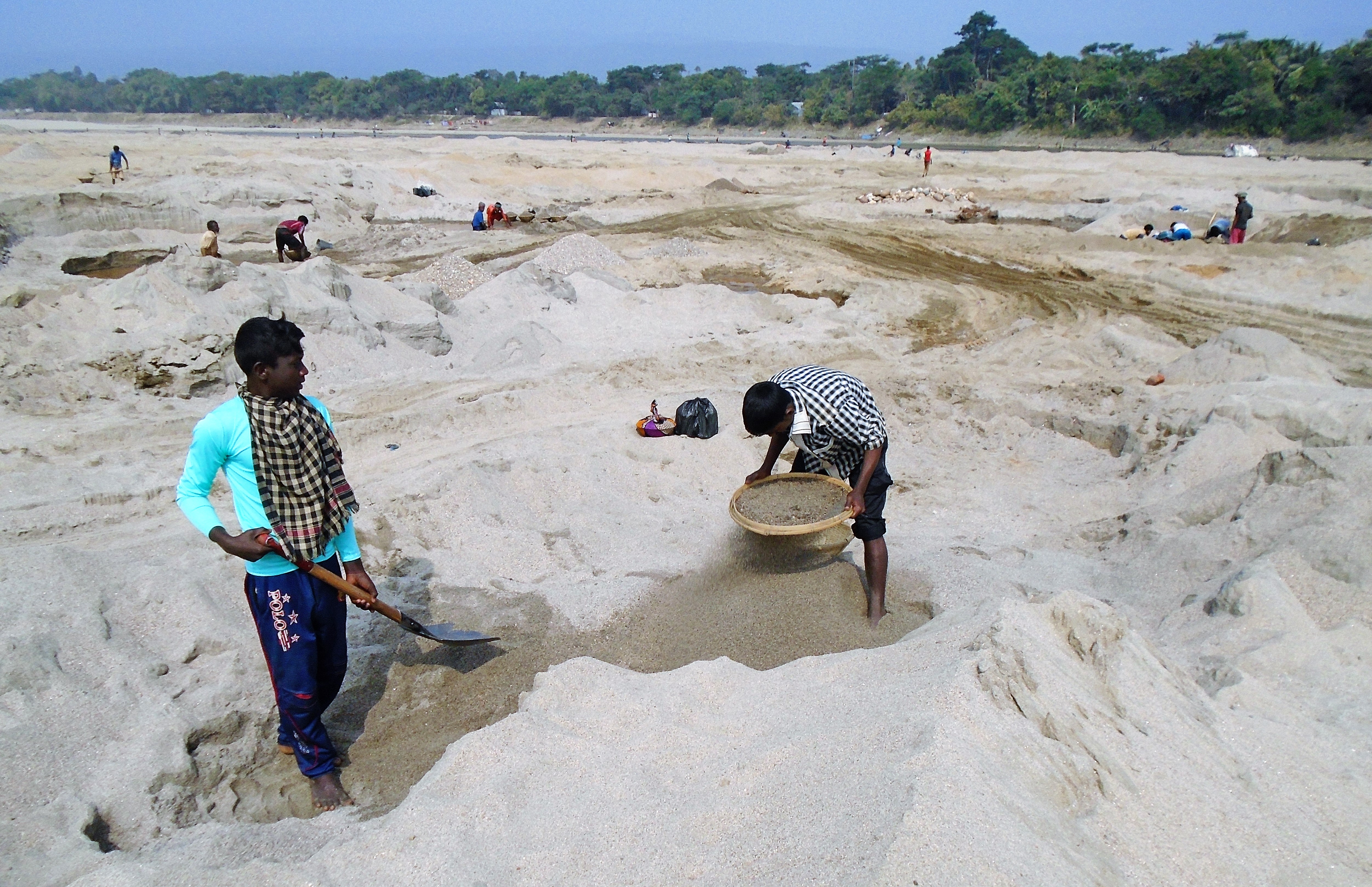 পিয়াইন নদীর পাড়ে বালি চেঁকে পাথর সংগ্রহ।