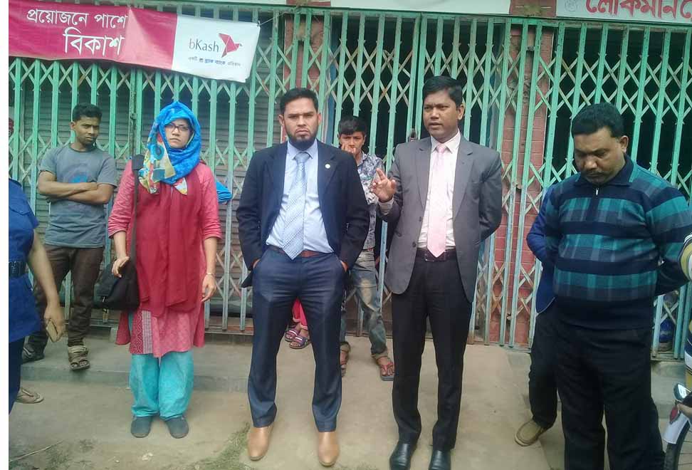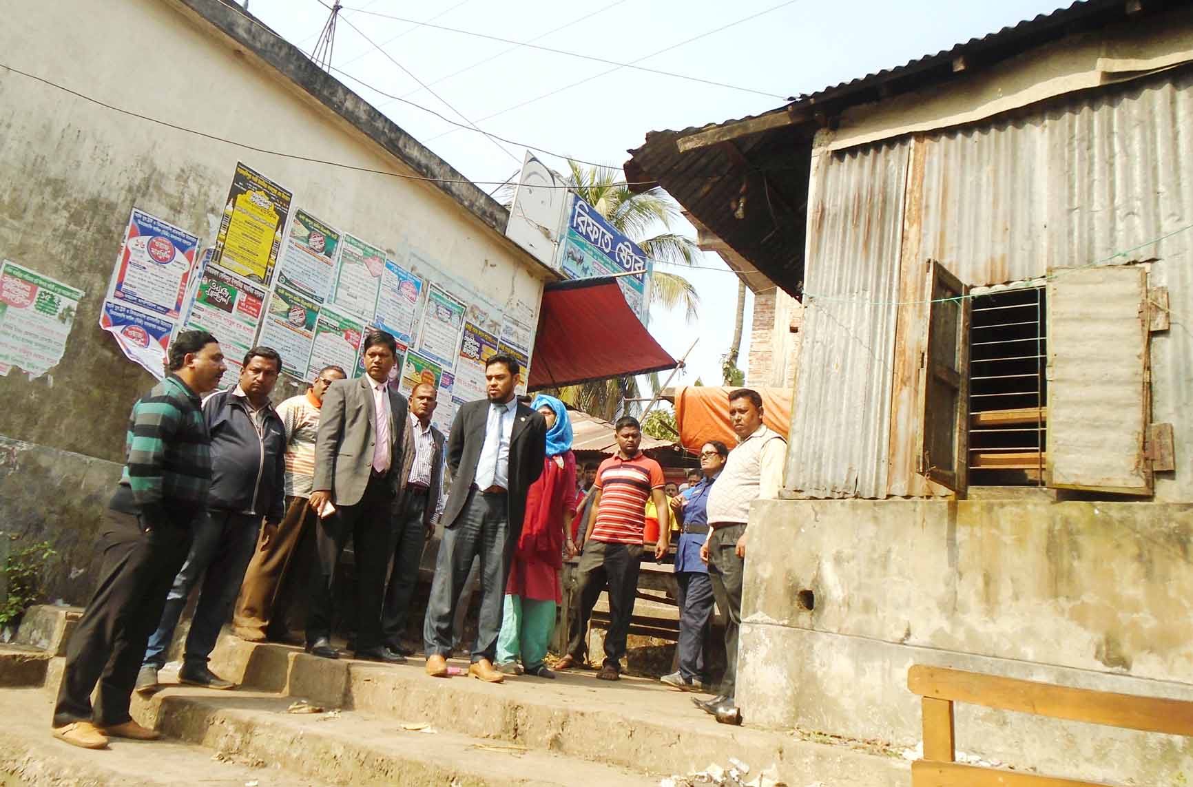 বিবাদমান মসজিদের পুকুর ও দোকানঘরটি দেখেন জেলা ও উপজেলা প্রশাসনের কর্মকর্তারা।